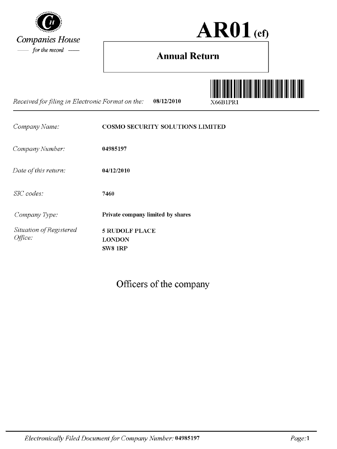 Company Name: COSMO SECURITY SOLUTIONS LIMITED