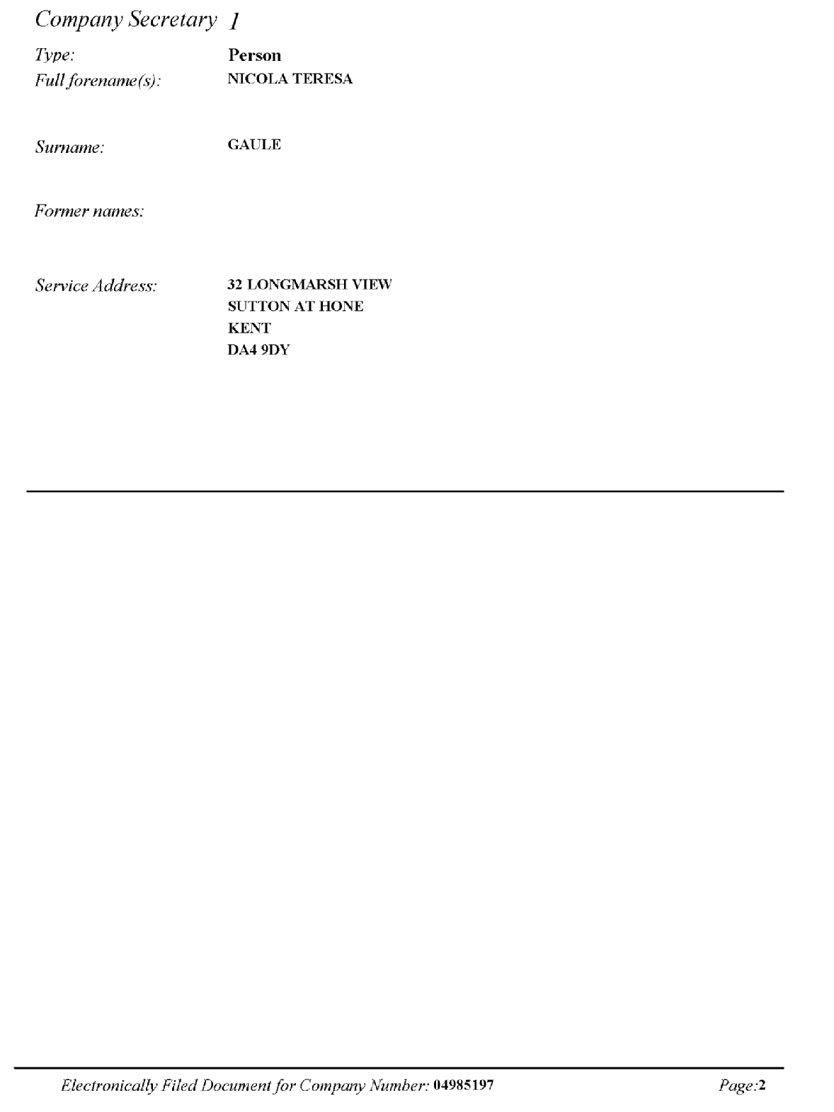 Appointed: 01/12/2003 Date of Birth: 01/01/1968