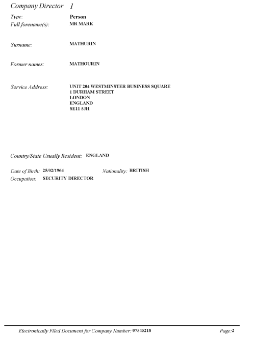 Nature Of Business (SIC(92)): 7460 – Investigation & security