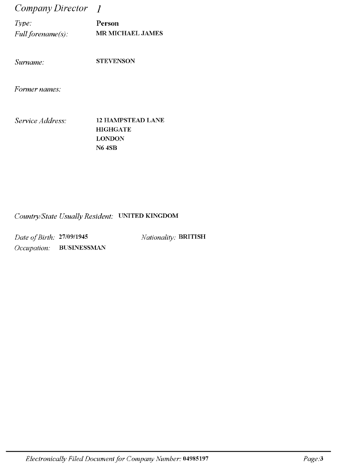 DIRECTOR: STEVENSON, MICHAEL JAMES MR