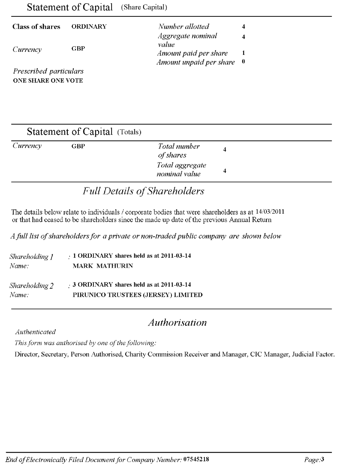 15/03/2011 LATEST SOC 15/03/11 STATEMENT OF CAPITAL;GBP 4