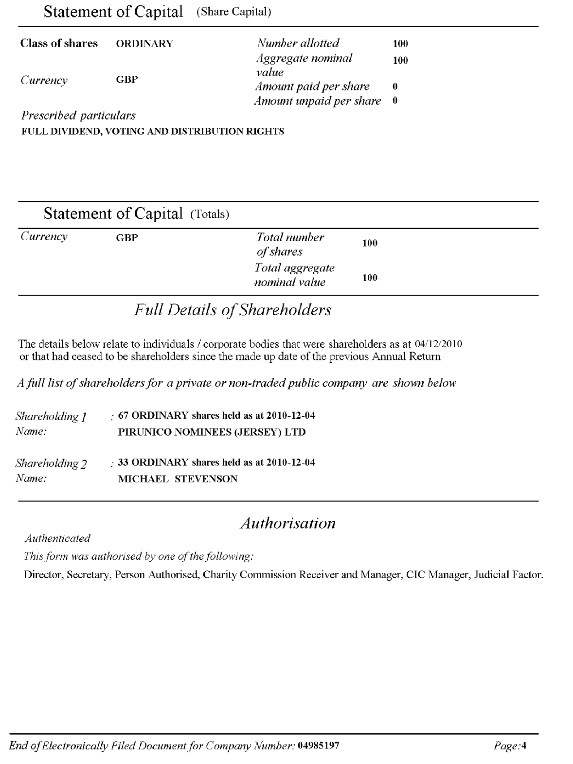 08/12/2010 LATEST SOC 08/12/10 STATEMENT OF CAPITAL;GBP 100
