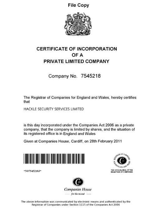 Company Name: HACKLE SECURITY SERVICES LIMITED
