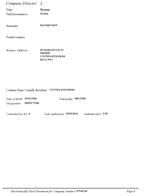 Company Number: 07545218 Date of Incorporation: 28/02/2011