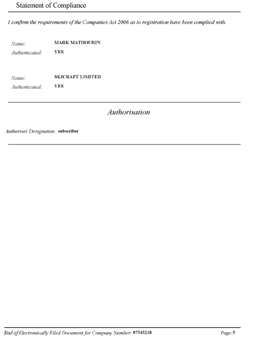 Companies House Registration shows only one company called Skicraft limited in the UK (as of 21/03/11)