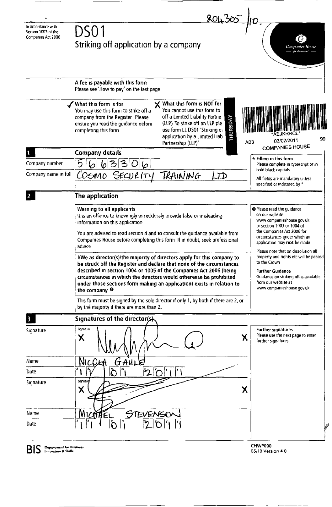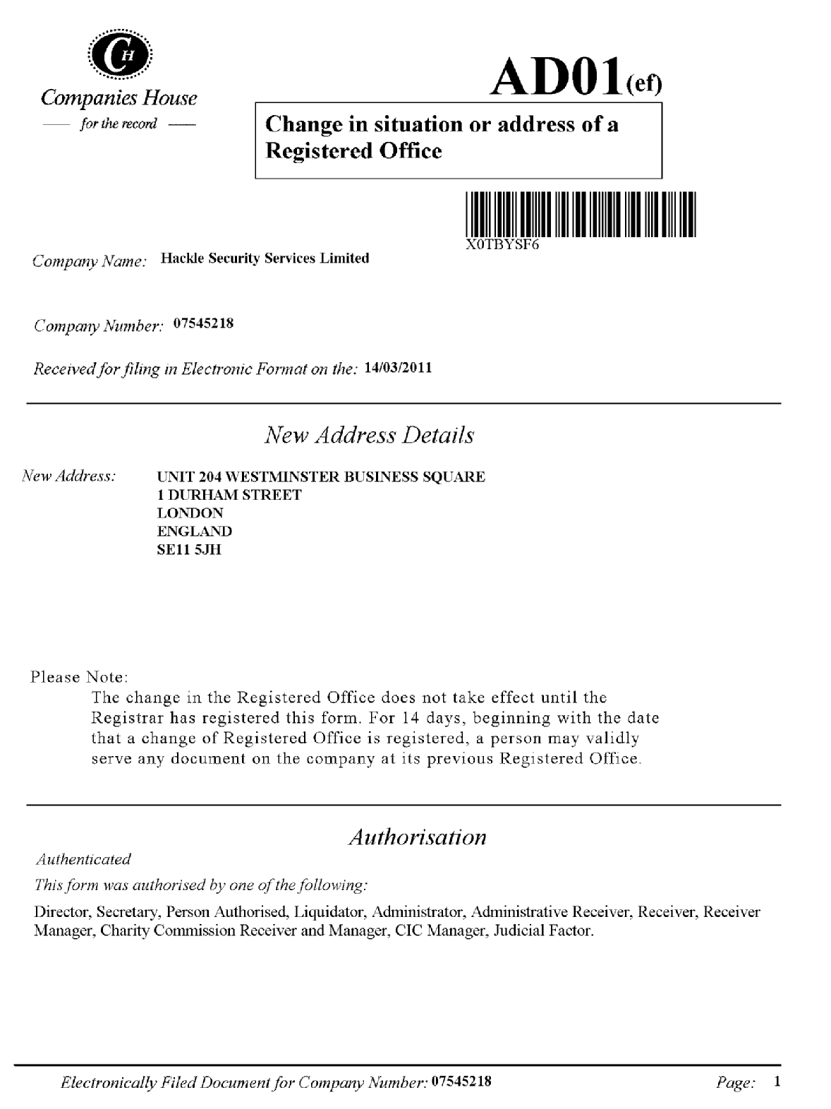 Hackle Security Services – Form IN01 (ef) – BELOW
