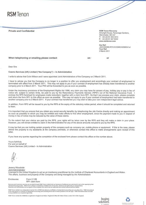 Joint Administrators’ Names and Address: Jeremy Woodside and Colin Watson (IP Nos 9515 and 9478), both of RSM Tenon Recovery, Arkwright House, Parsonage Gardens, Manchester M3 2LF Further details contact: Richard Cole, Tel: 0161 827 8445,