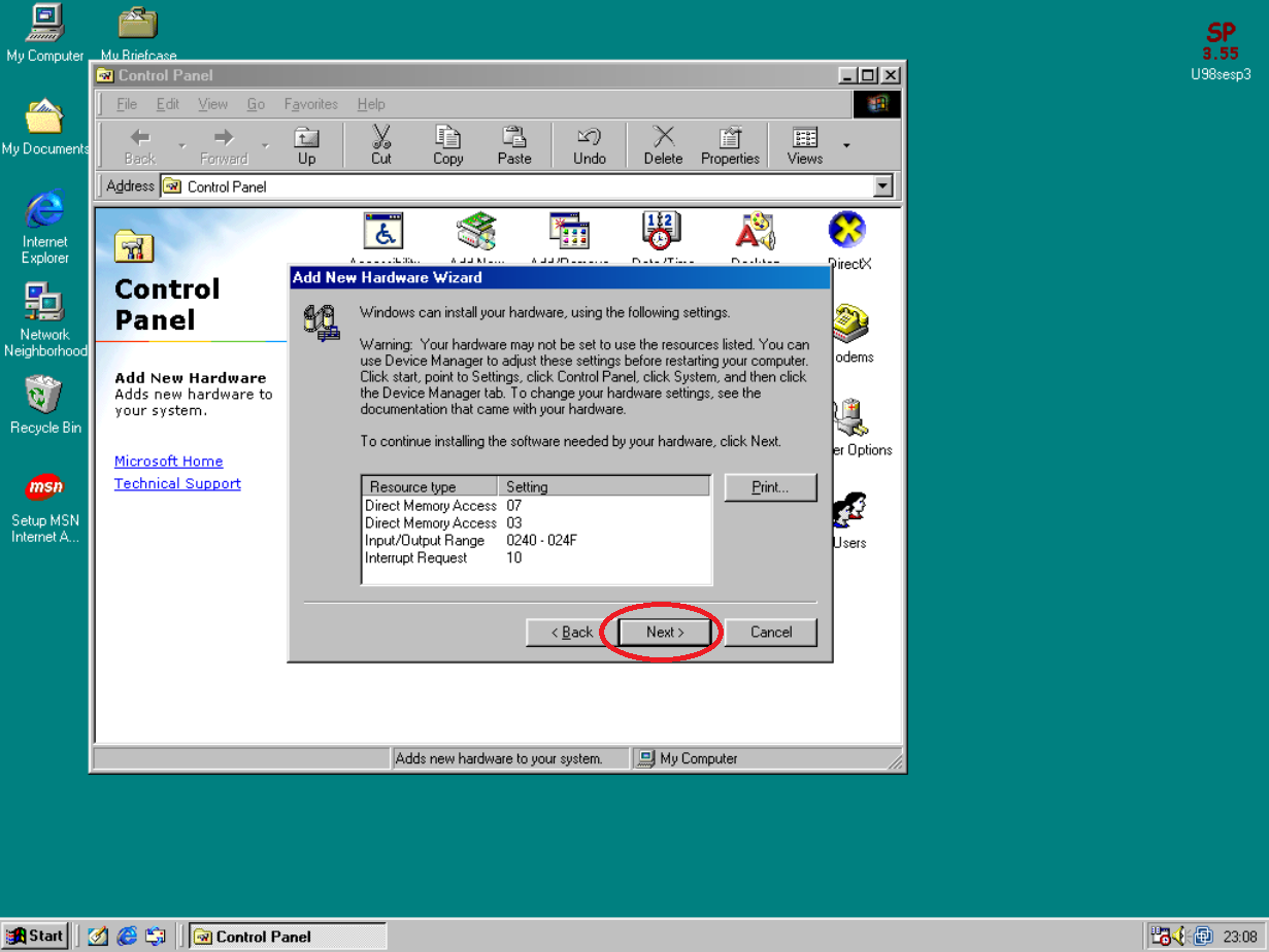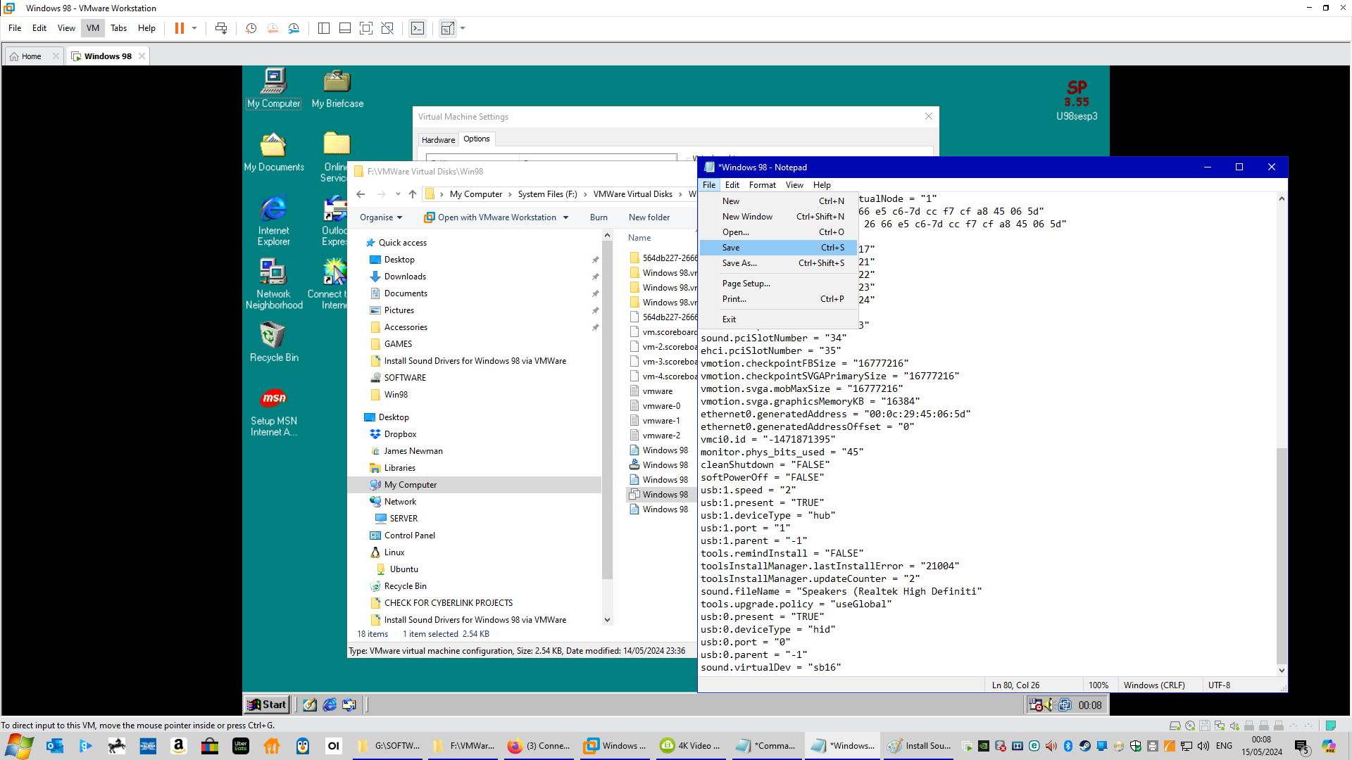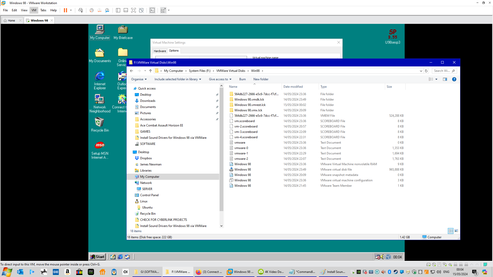 The following instructions and screenshots will help you to correctly setup the sound drivers for Windows 98SE in VMWARE. This will give you sound that isn’t distorted or choppy using drivers that are already present in Windows 98.
